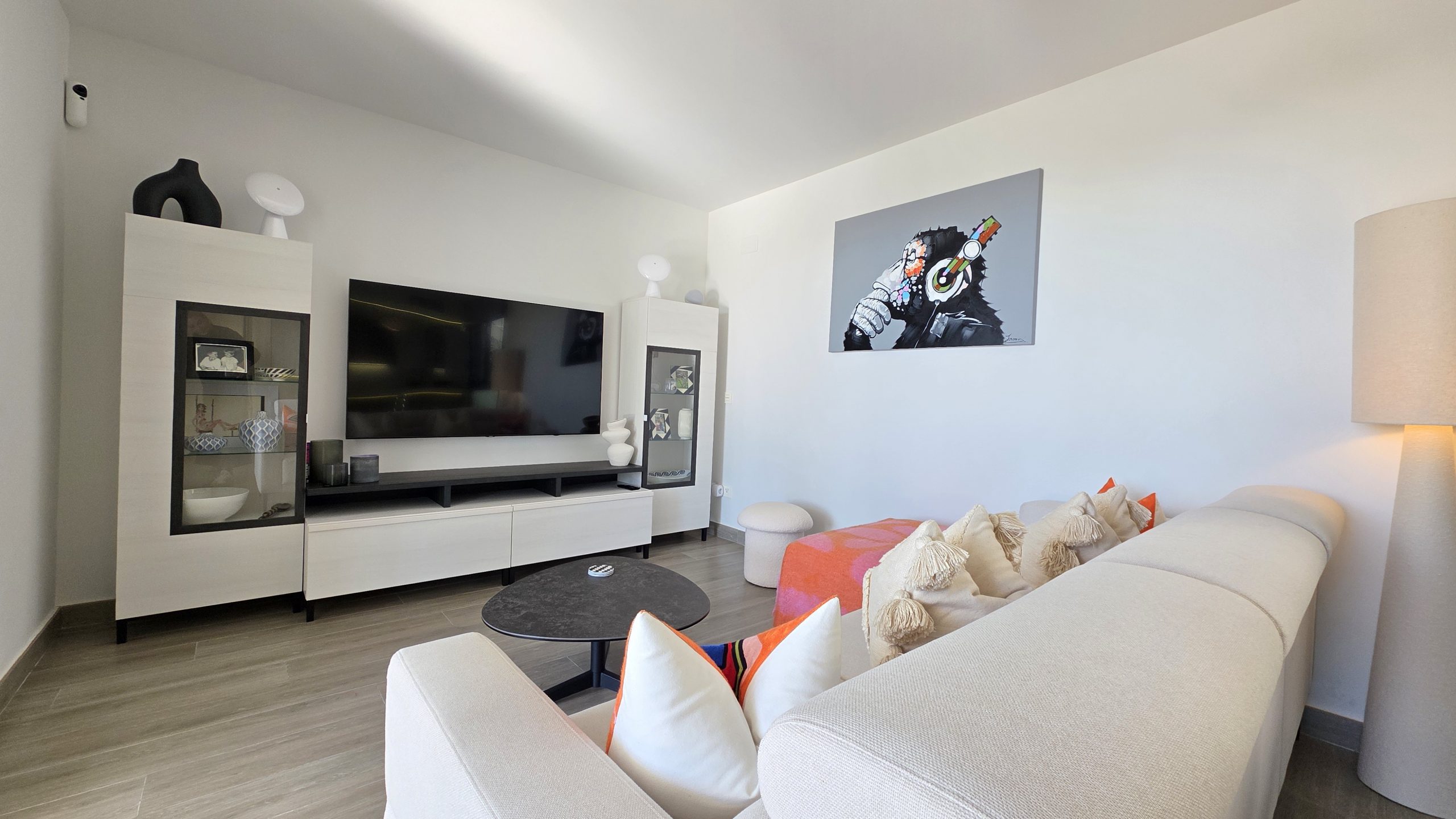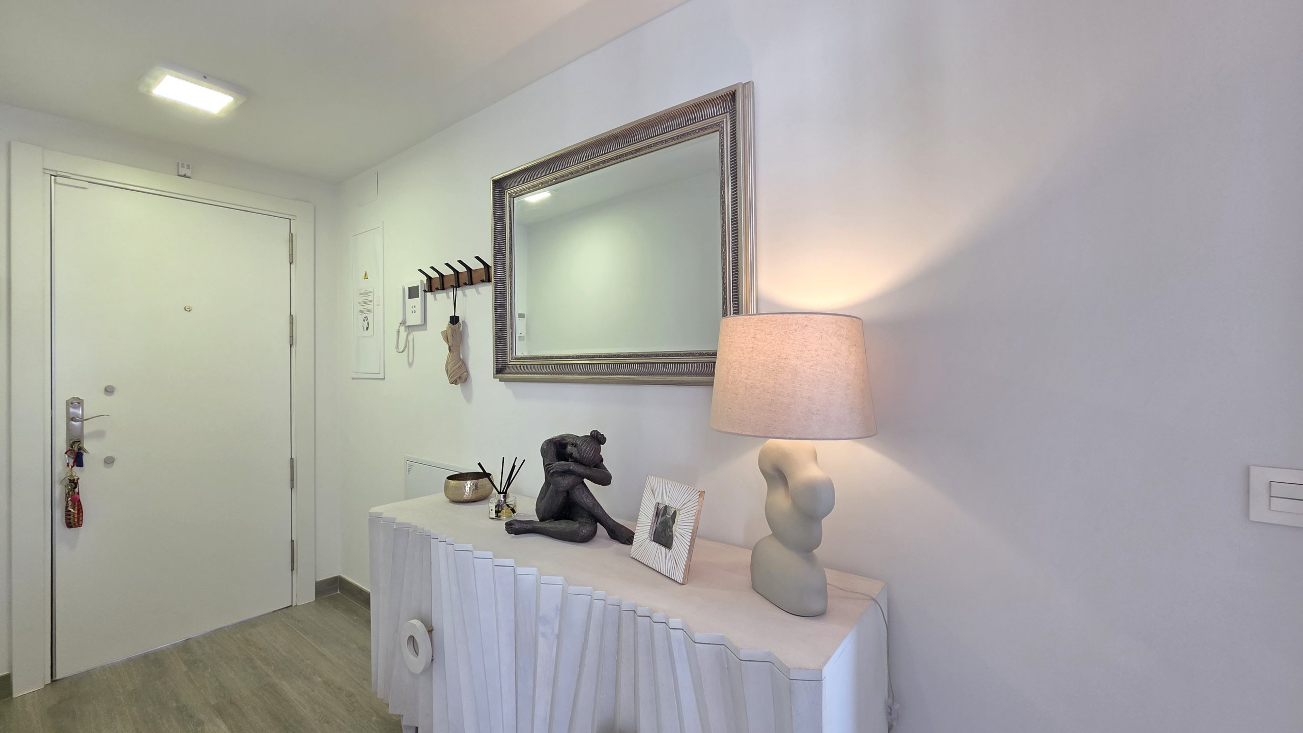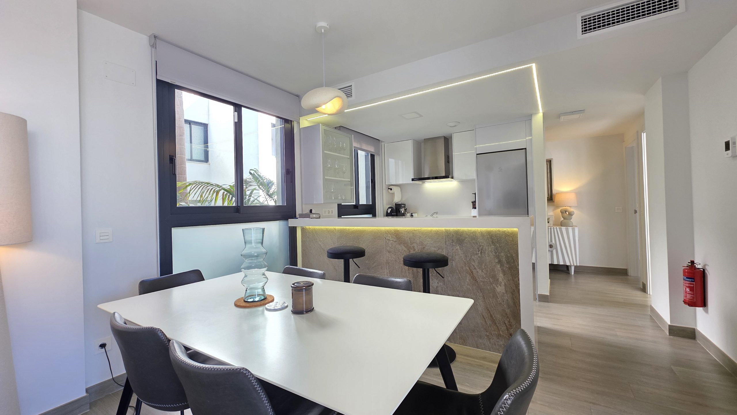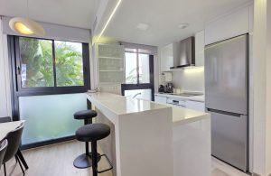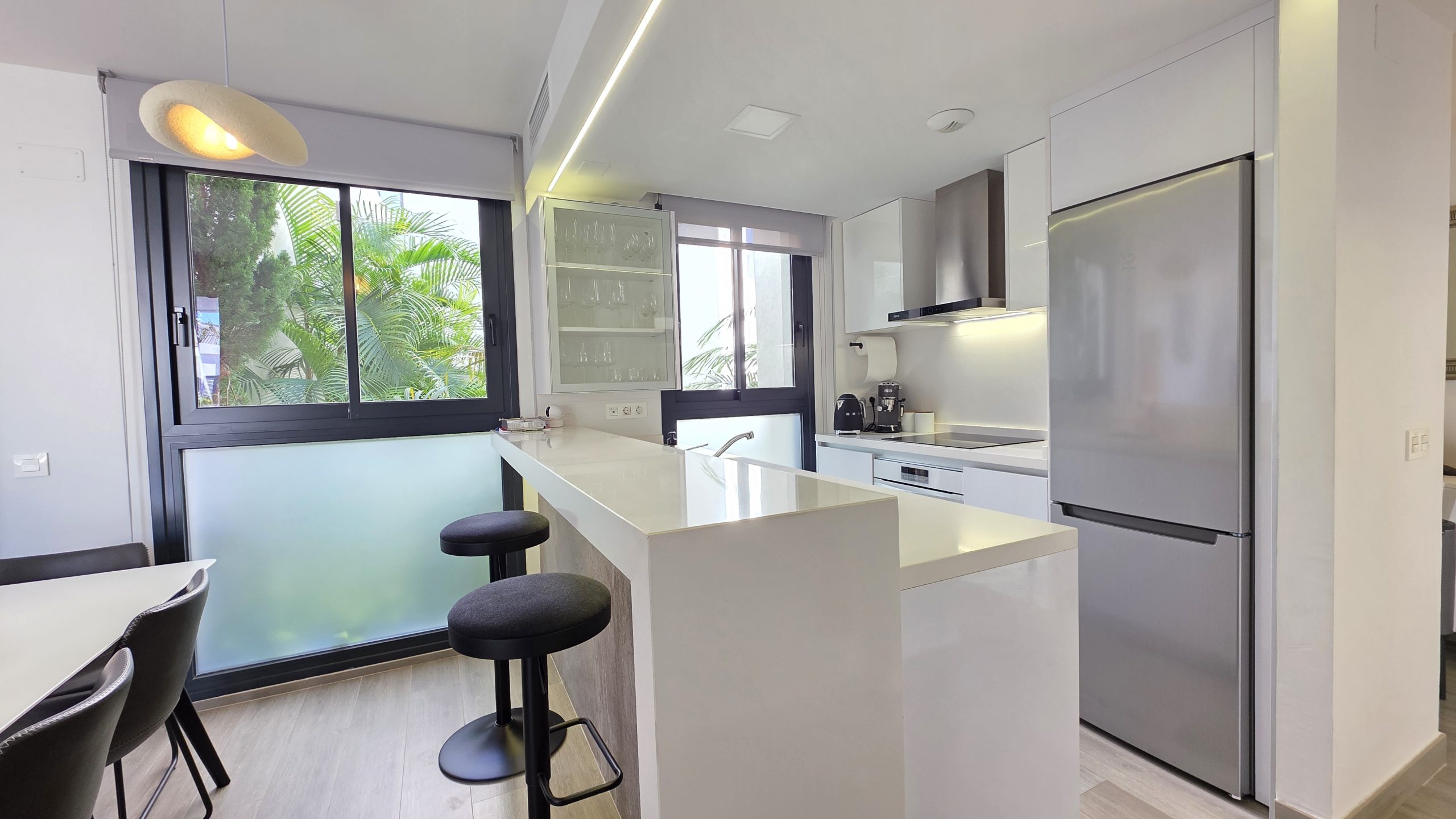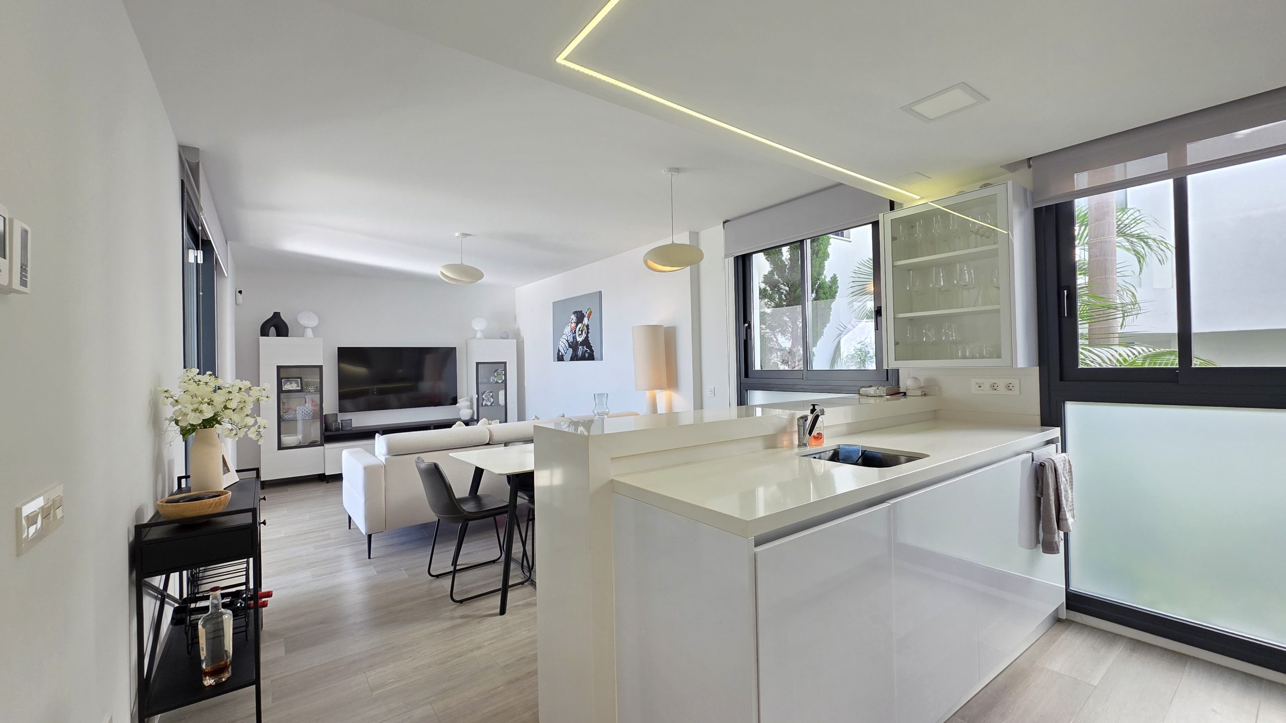 Al entrar, destaca de inmediato la cuidada calidad de los acabados y la amplitud de los espacios. El luminoso salón se integra de forma natural con la moderna cocina de estilo abierto, totalmente equipada y en perfecta armonía con la decoración refinada del apartamento. Todo ha sido diseñado con un gusto exquisito y se vende completamente amueblado, listo para entrar a vivir.