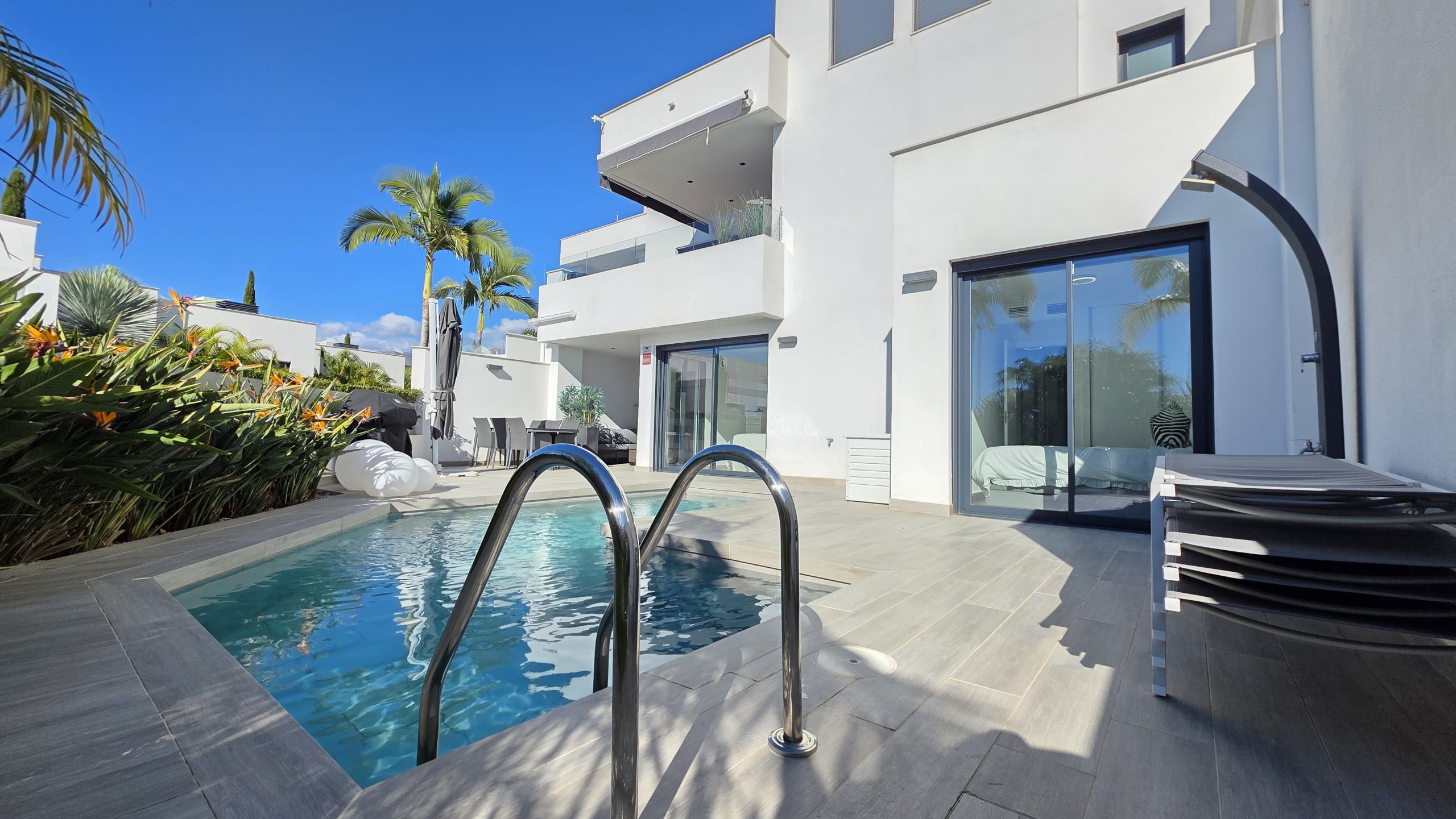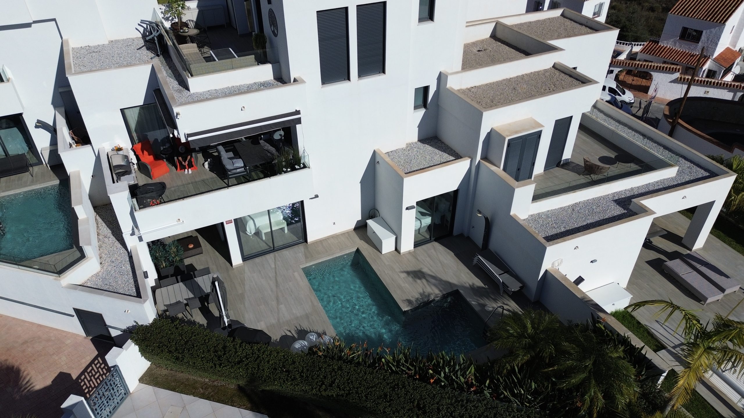 El gran protagonista de esta propiedad es la magnífica piscina privada —un privilegio poco habitual en esta zona— que aporta total privacidad y convierte la terraza en un auténtico oasis. Además, el complejo dispone de una espectacular piscina comunitaria y de amplias zonas de aparcamiento, garantizando comodidad y accesibilidad en todo momento.