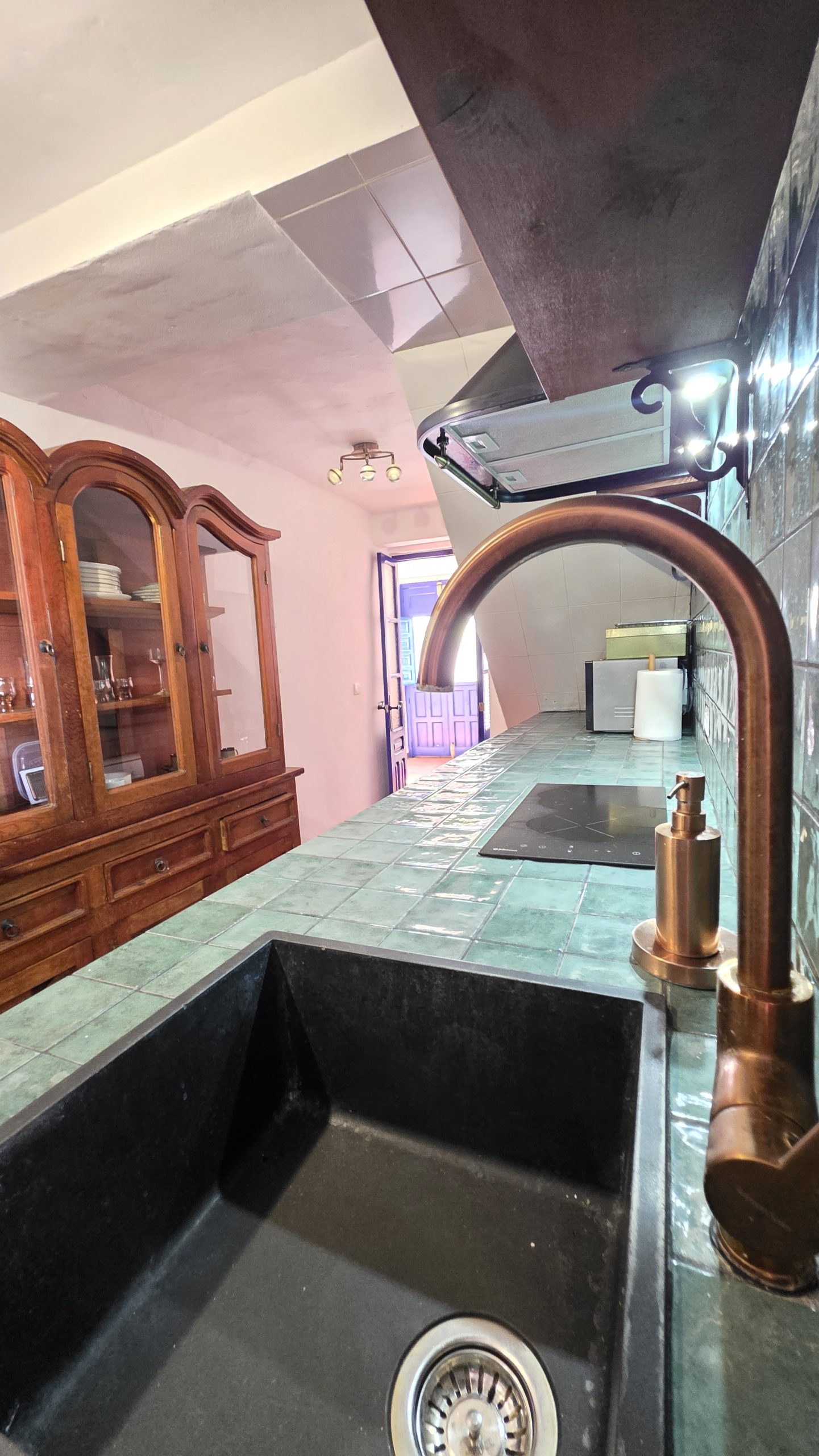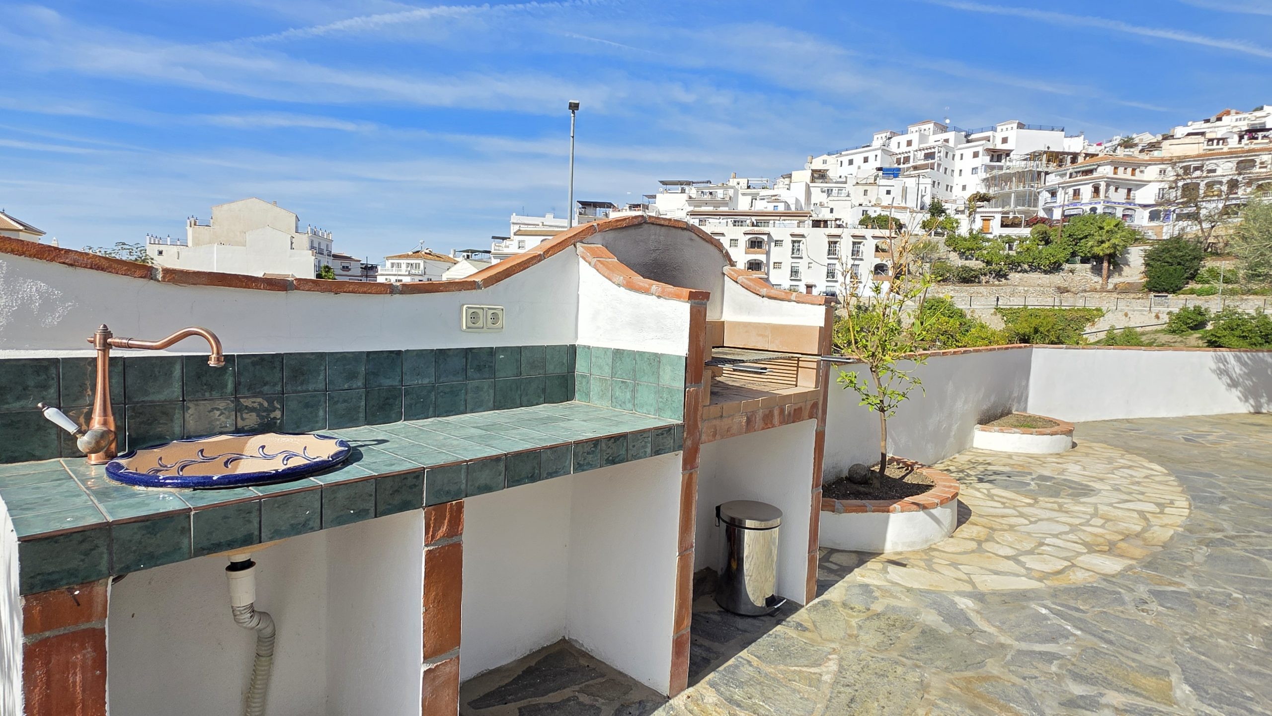 El gran patio es, sin duda, el corazón de esta propiedad. Aquí ya se encuentra instalada una cocina exterior, ideal para cocinar y disfrutar del estilo de vida mediterráneo. Aun así, el espacio es tan amplio que permite crear zonas de descanso, comedor, solárium o incluso instalar una pequeña piscina. Un lujo poco común en un pueblo andaluz como Cómpeta.