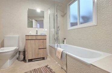 En la primera planta se encuentran tres dormitorios confortables, dos baños —uno de ellos ensuite— y un cuarto de lavandería independiente. La distribución es funcional y bien pensada, perfecta tanto para residencia habitual como para segunda vivienda.