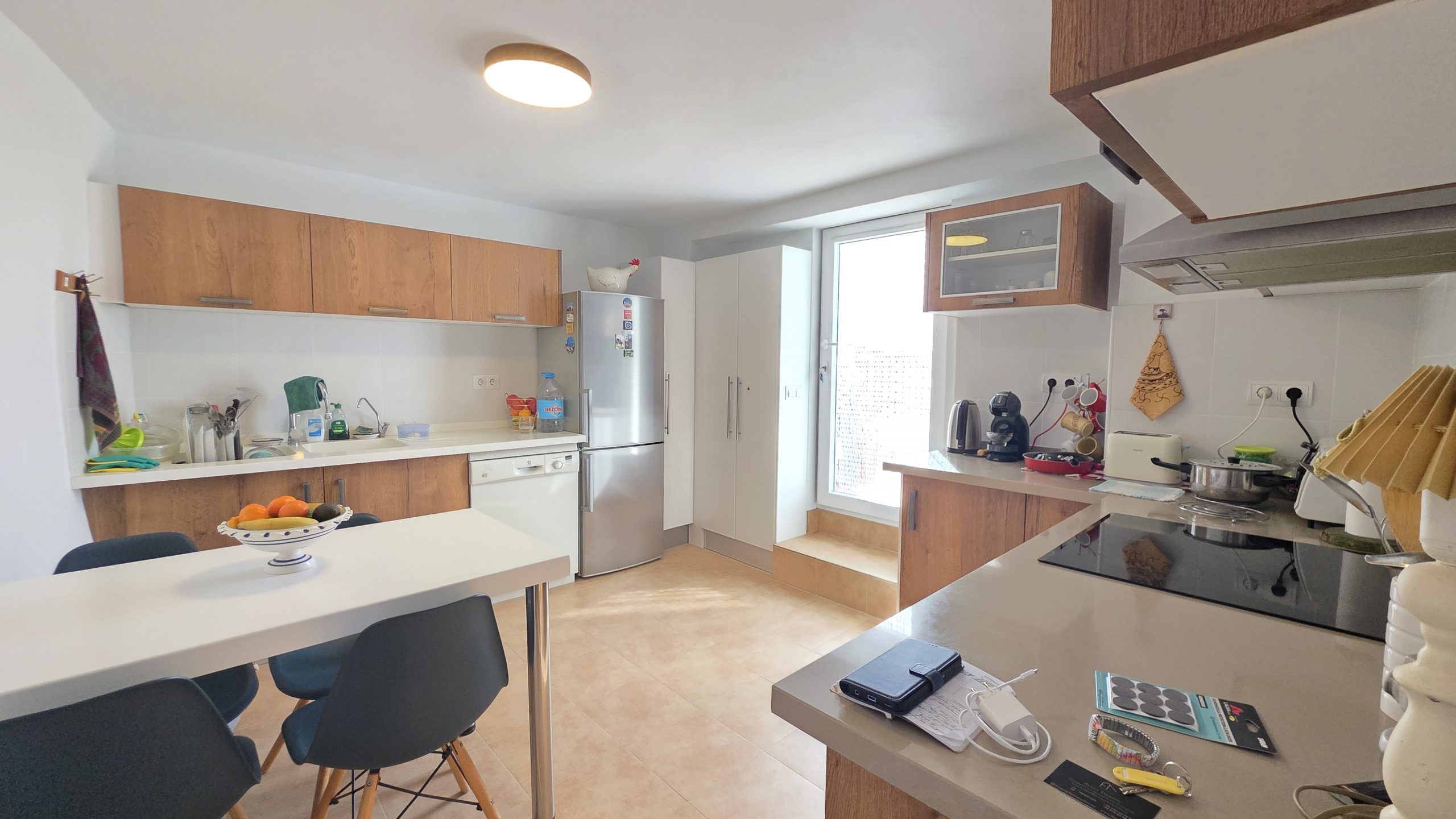 La segunda planta alberga la zona de día: un salón luminoso, la cocina y una amplia terraza. Esta gran terraza es accesible directamente desde la cocina y cuenta además con una cocina exterior totalmente equipada, ideal para desayunos tranquilos, almuerzos al aire libre y cenas con familia y amigos.