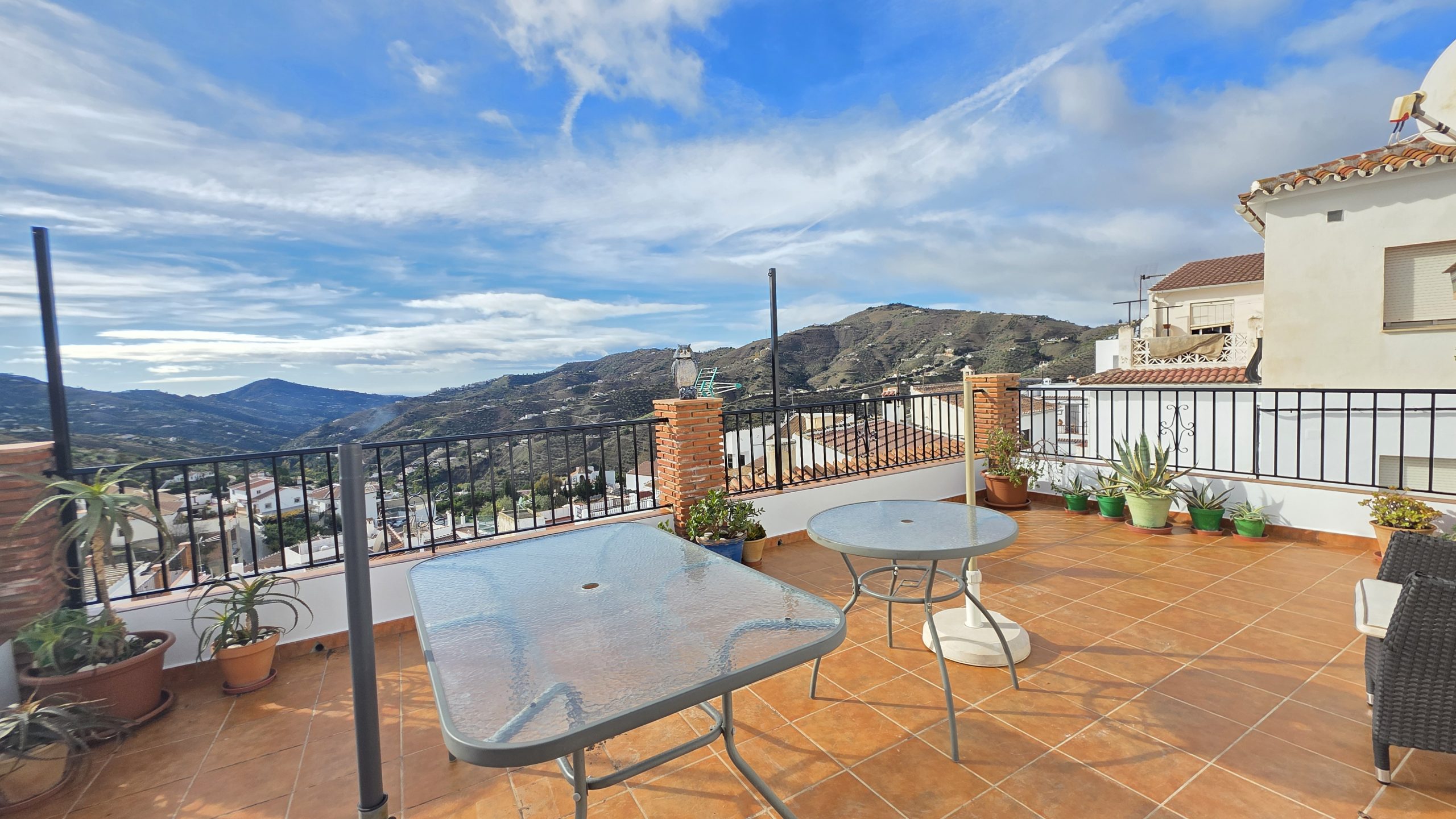 La azotea se encuentra sobre esta planta y es accesible mediante una escalera interior desde el salón. Es un espacio perfecto para relajarse, tomar el sol y disfrutar de la privacidad y de las espectaculares vistas panorámicas.