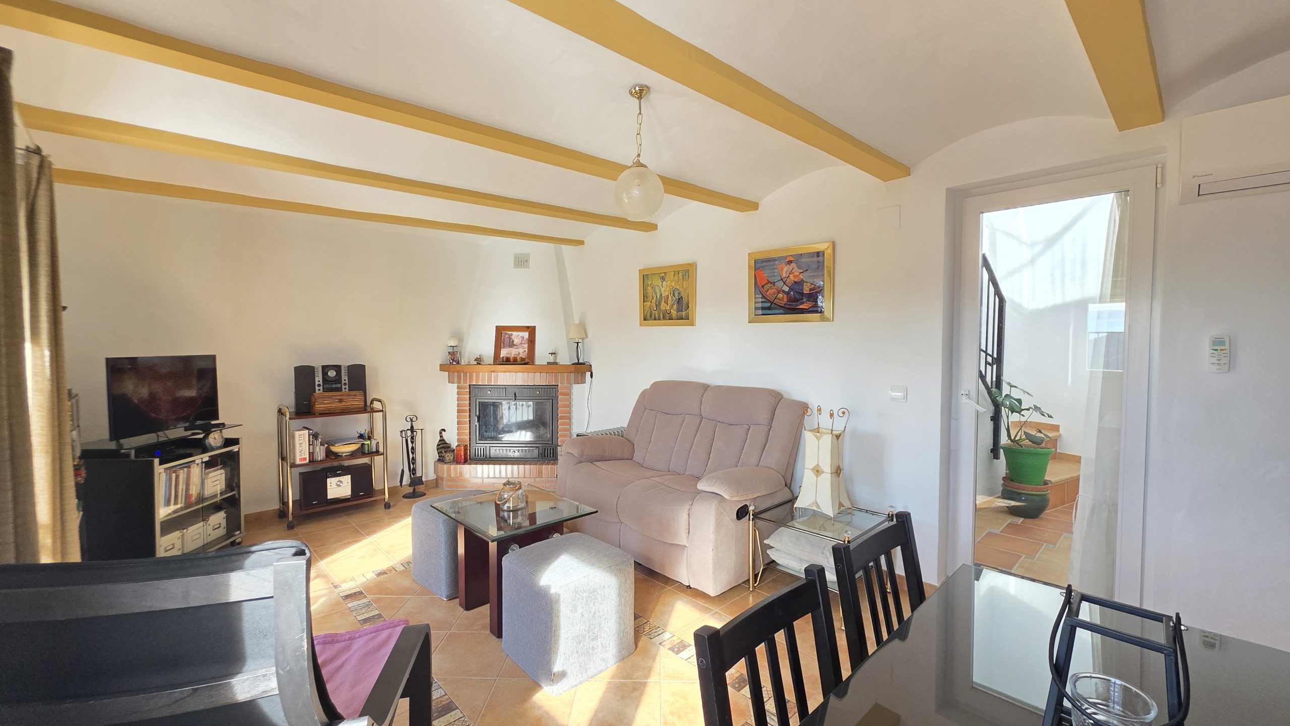 Al entrar, accedemos a un amplio recibidor que transmite una sensación abierta y agradable. Desde aquí se llega a un práctico trastero y a una estancia adicional, ideal como oficina, sala de trabajo o dormitorio para invitados. La casa cuenta con nuevas ventanas de PVC con doble acristalamiento, lo que garantiza un excelente aislamiento y un mantenimiento mínimo. En el salón hay un sistema de aire acondicionado (frío/calor) que proporciona comodidad durante todo el año.