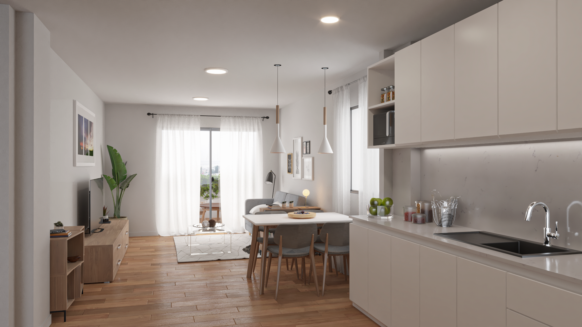 El residencial está compuesto por 99 viviendas distribuidas en 6 edificios dentro de un recinto privado. Todas las propiedades destacan por su diseño funcional, luminosidad y amplios espacios exteriores.