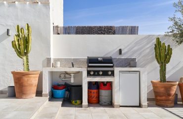 El exterior es uno de los grandes atractivos de la propiedad. La piscina privada, las diferentes terrazas, el balcón y la azotea ofrecen múltiples espacios para relajarse y disfrutar del sol en cualquier momento del día. La cocina exterior con barbacoa invita a largas veladas al aire libre, mientras que la ducha exterior aporta un extra de confort en los meses más cálidos.