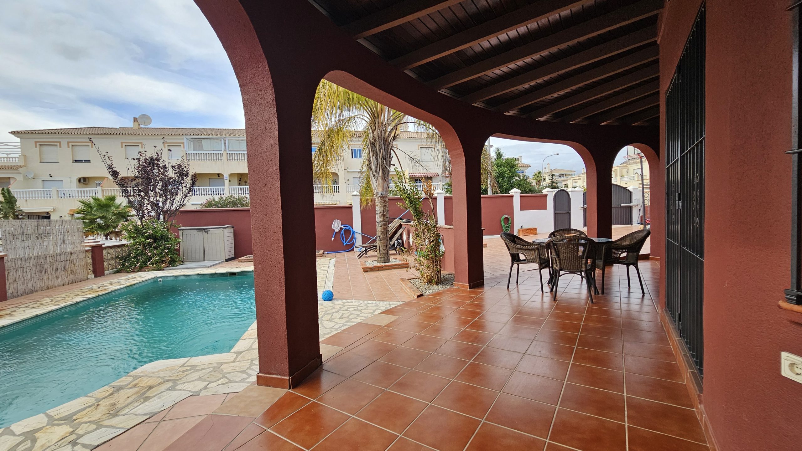 En el exterior encontrarás una estupenda piscina privada y una generosa zona al aire libre, perfecta para aprovechar el clima soleado de la Costa del Sol durante todo el año. La propiedad dispone además de aparcamiento privado en la propia parcela, lo que añade un plus de comodidad.
