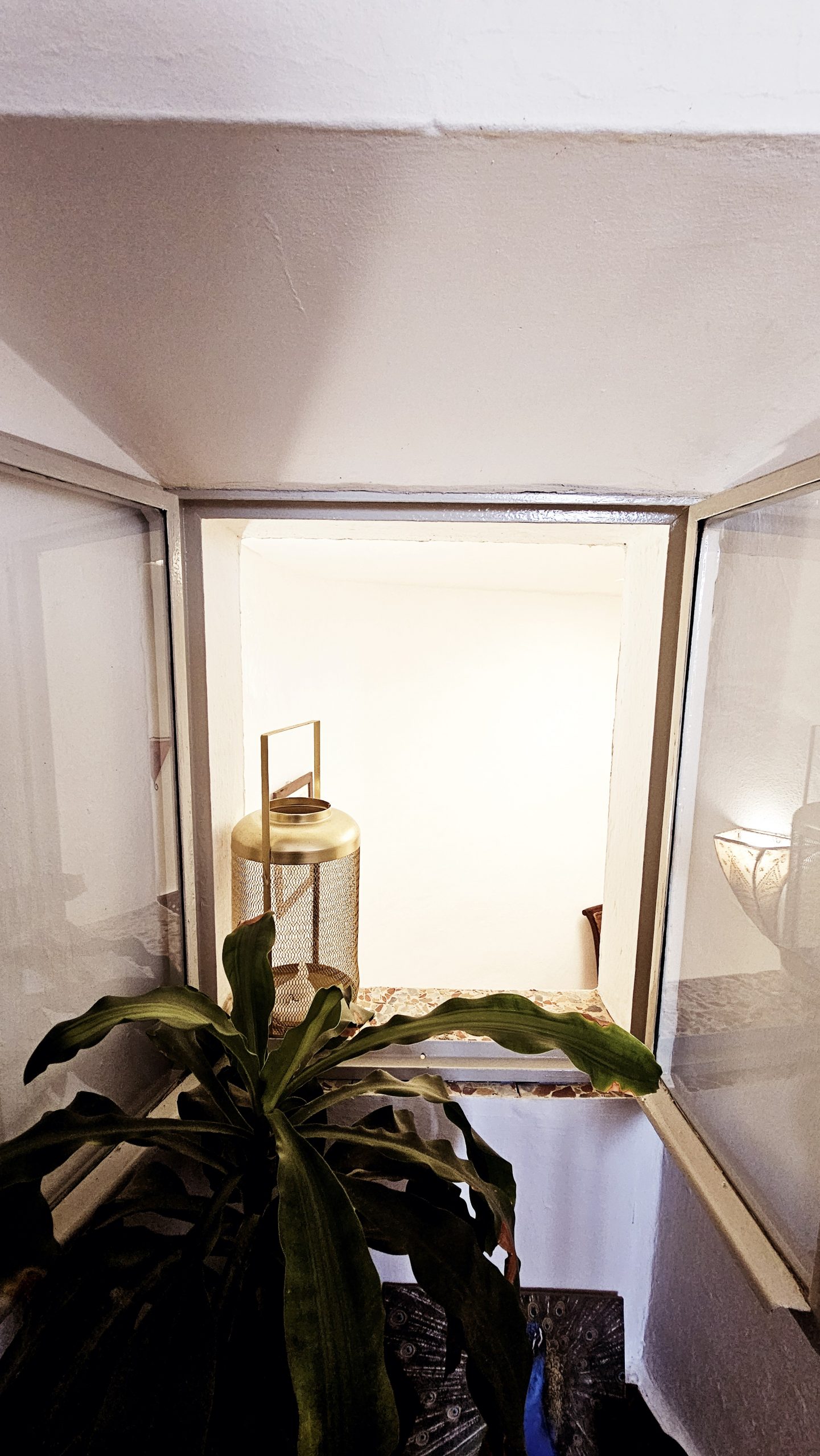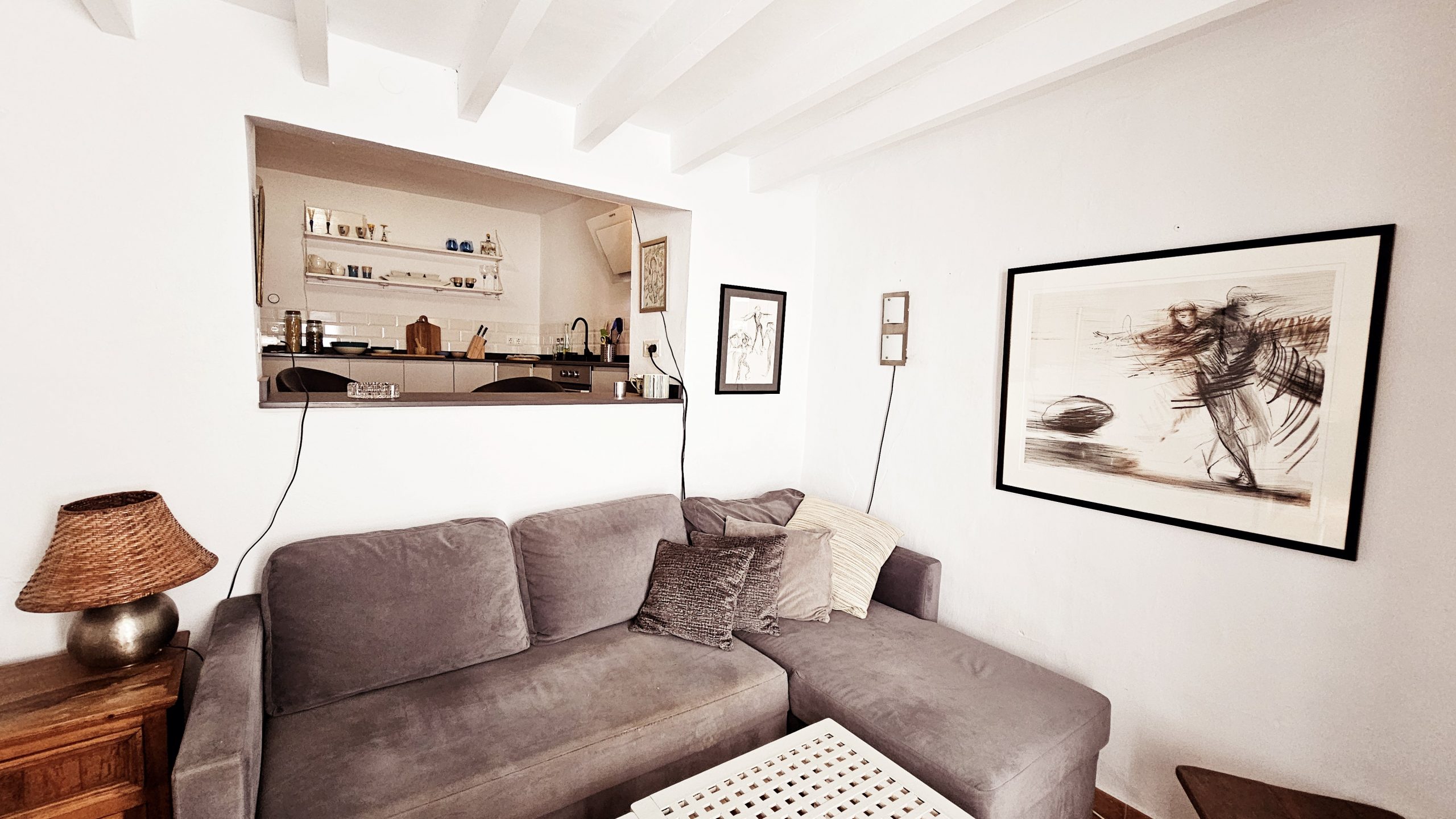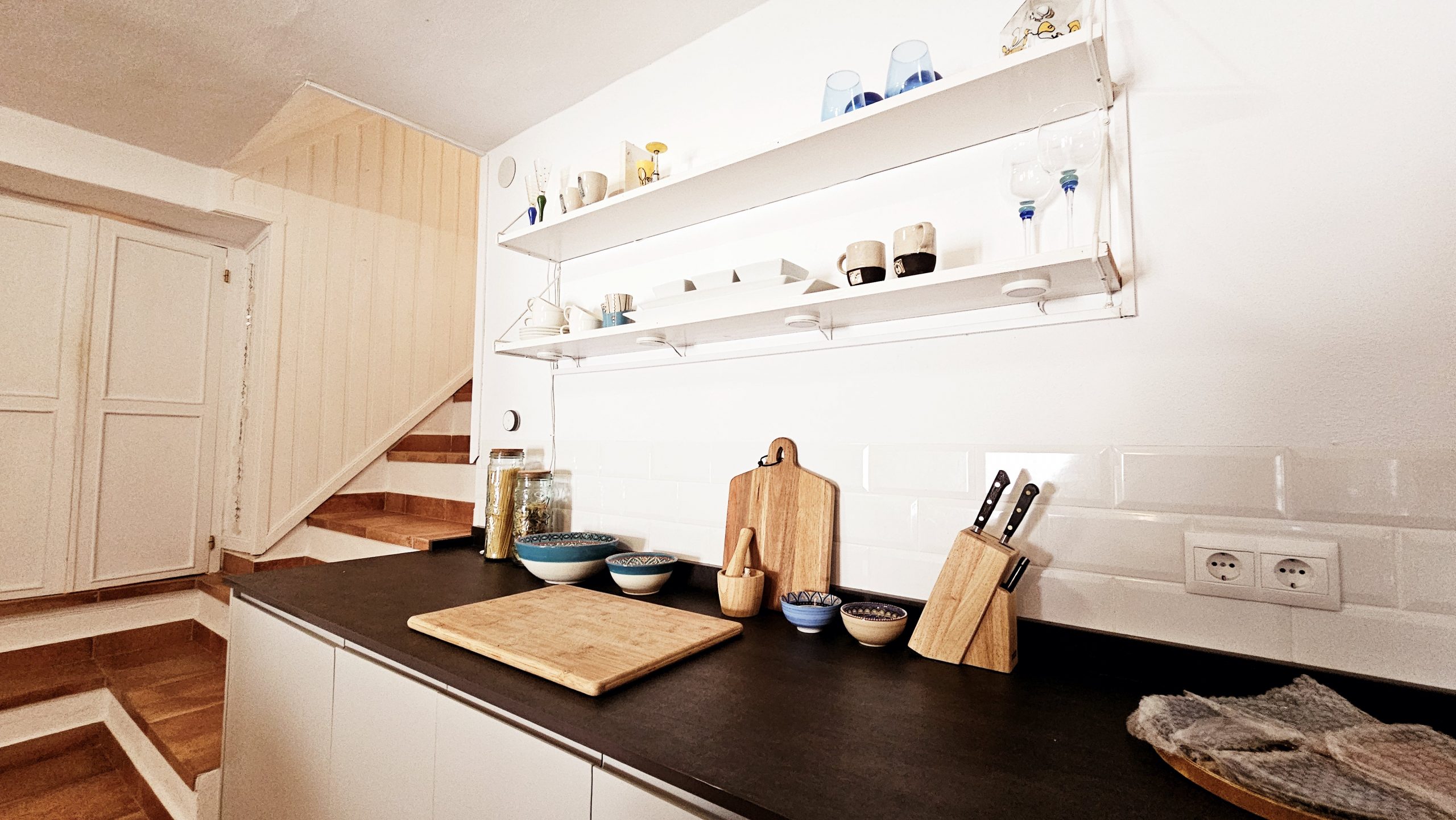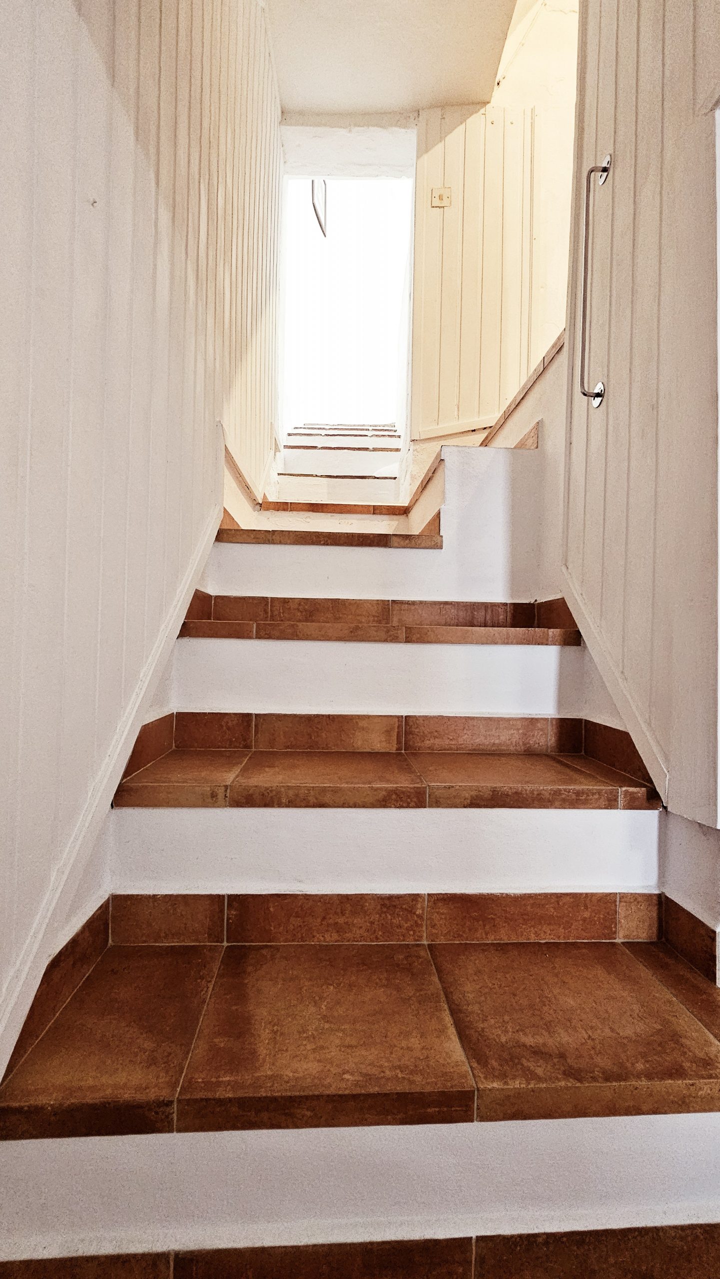En la primera planta se encuentra un dormitorio con una claraboya que inunda el espacio de luz natural. Subiendo unos peldaños más, el dormitorio principal se convierte en un verdadero refugio, con puertas dobles que se abren a una terraza privada, perfecta para comenzar el día con un café o relajarse al atardecer.