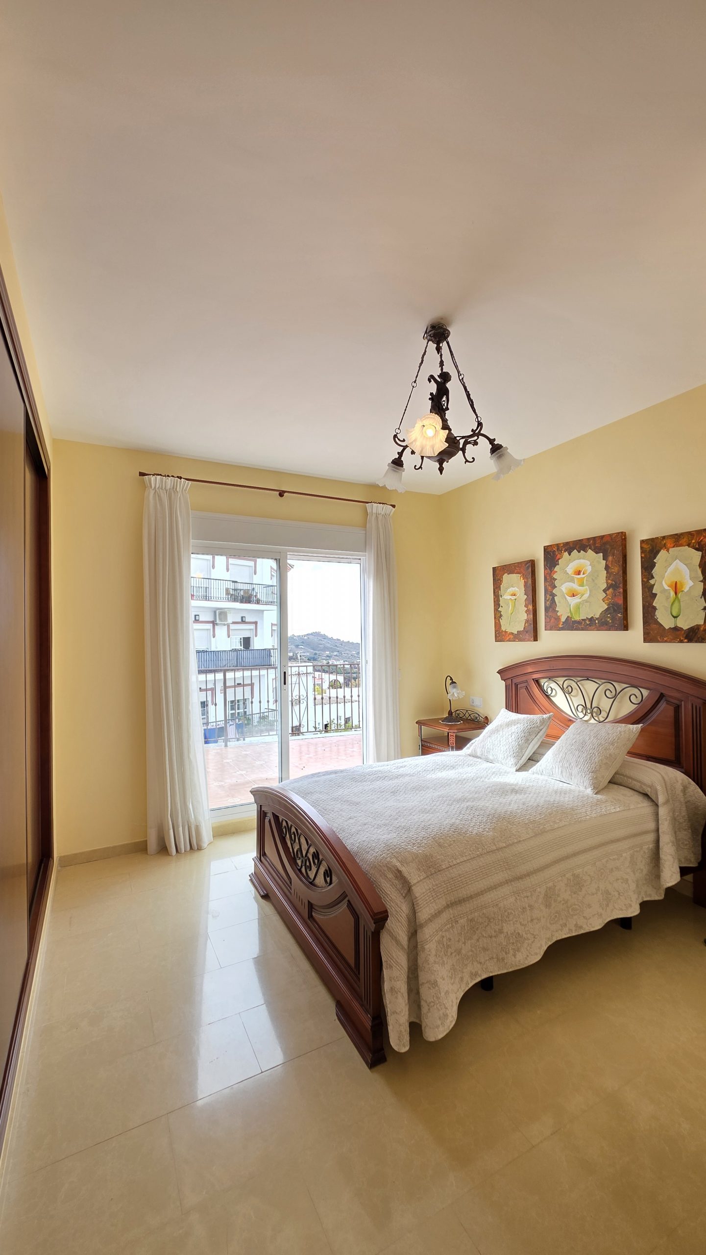 El interior presenta una distribución luminosa y práctica. La sala de estar es acogedora y agradable, perfecta para el día a día. El dormitorio principal tiene acceso directo a una amplia terraza desde donde se pueden disfrutar vistas panorámicas del pueblo y del mar Mediterráneo, un lugar ideal para relajarse y disfrutar del entorno.